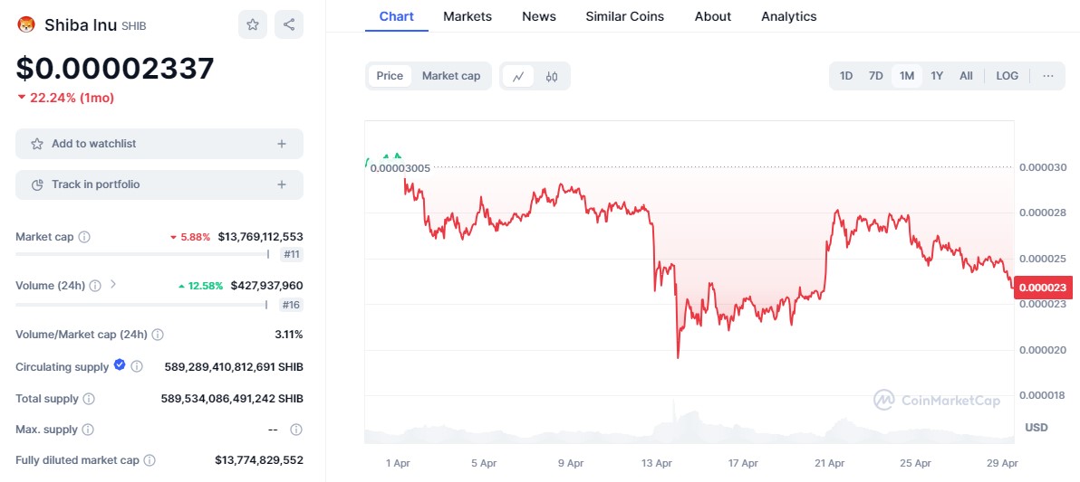 Given the current market sentiment and technical indicators, Shiba Inu (SHIB) faces the looming possibility of another correction. If investor interest continues to dwindle and selling pressure mounts, the altcoin could see further downside, potentially extending its decline by up to 20%.
