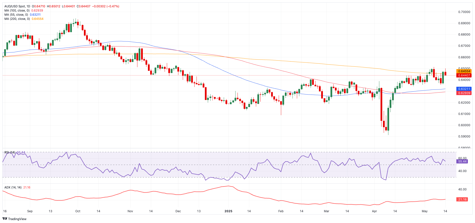 The Aussie took a step back on Wednesday, giving up some of Tuesday's rally despite the generally softer US dollar. After another failed attempt to crack the tough 0.6500 barrier, the pair drifted back toward its 200-day moving average around 0.6460.